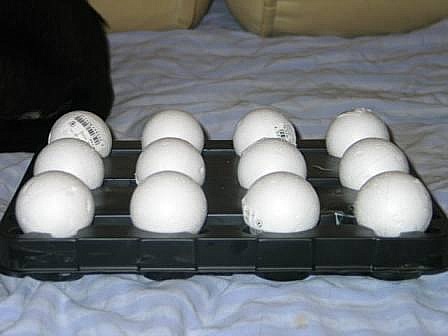 Und gestern bekamen wir ein neues Spielzeug: Unter den weißen Styroporbällen hat Christine paar Leckerchen versteckt. Durch Wegschieben der Bälle kommen wir dran:-) Für rabiate Vierbeiner nicht geeignet, aber uns macht es Spaß.